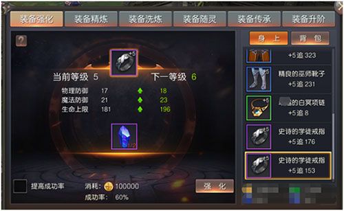 装备是提升战斗力最主要的途径之一,玩家一共可以装备八件装备,而这些装备都是可以进行升级进阶的,升级进阶之后杀伤力自然也会跟着提升,并获得酷炫的发光照型。