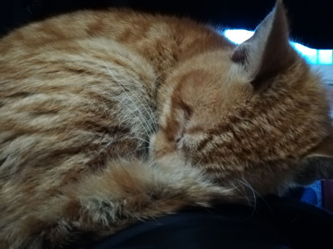 表姐家的喵有两只,一只比较小,怕生的很可爱的黑白喵所以这只就没拍到了……一只就是这个比较黏人的总是很困的大橘喵了……感觉眼睛不是很好的样子,周围有点黏糊糊的东西,眯着眼的……
