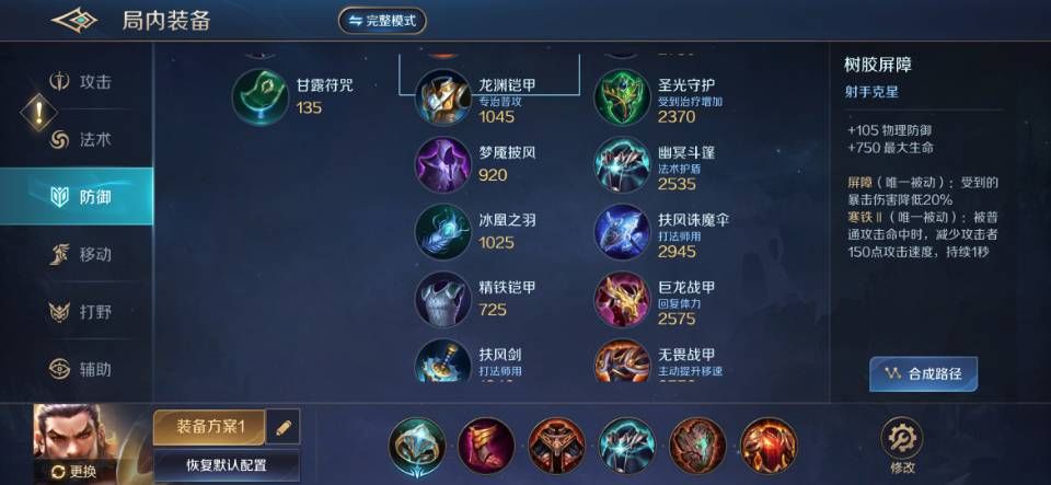 张飞的话,首先出回血提高赵云的生存率,以及强势越塔杀人的底气,接着根据敌方控制的多少选择抵抗或者护甲鞋,亦或者十分顺风出疾跑鞋,剩下的话就根据敌方英雄去选择对应的装备(比如射手十分强势可以出树胶来降低他的输出)下图为常用装