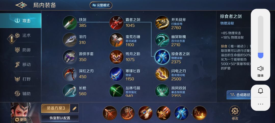 首先打野刀就不说了,接下来攻速鞋,因为自己伤害是足够的,多以增加攻击速度可以打出更多的伤害,第三件可以出一个陨灭来增强自己的普攻伤害,下一件就可以出众生寂灭来继续加强输出或者出名刀来求稳,发挥更大作用,下一件可以补吸血或者继续出开天战斧来增强对脆皮的伤害,两刀下去直接带走,最后一件保命装