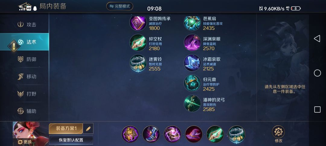 核心装没有之一,深渊泉眼增强法术回复以及减少消耗,推荐第一件,因为吕洞宾大招是非常的耗蓝的,而且在十秒内多次使用还会加呗消耗,所以这件装备越早出越好,可以增强英雄的续航能力,其他装备的话,就和黄泉大同小异了,装备如下图