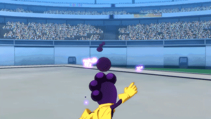 战斗中,峰田会从头顶拔出的粘性圆球,可以直接瞄准投掷攻击敌人,也可以往地上布置陷阱困住敌人;