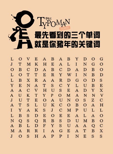 接下来是一个新年小游戏:在下图字母表中第一眼看到的三个单词,就是你新年的关键词。你的关键词是什么呢?