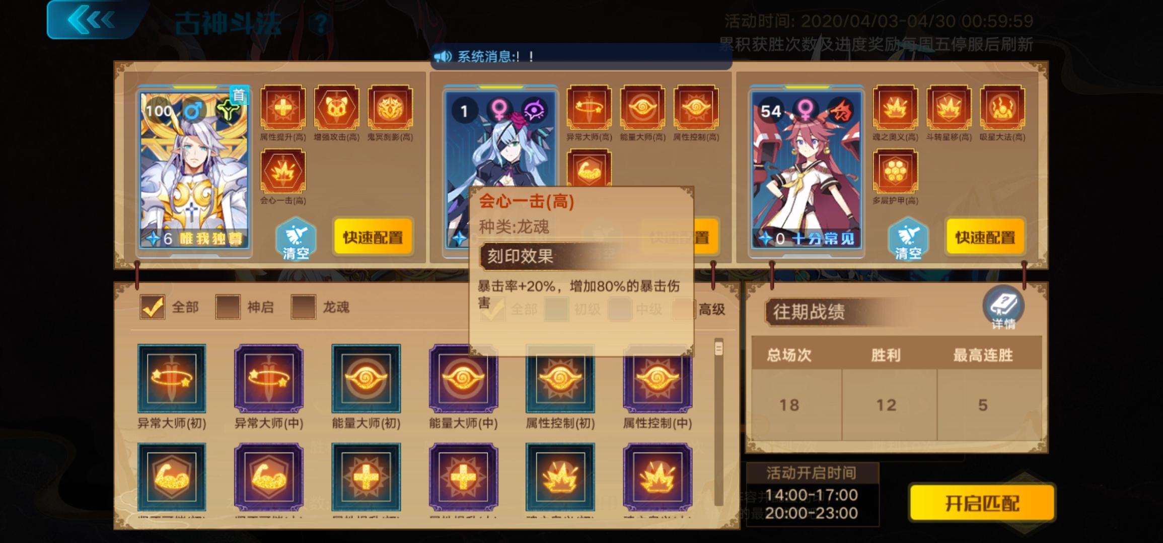 金鬼套暴击率+30%,特性造物主暴击率+20%,刻印会心一击暴击率+20%,属性提升刻印全属性+5。