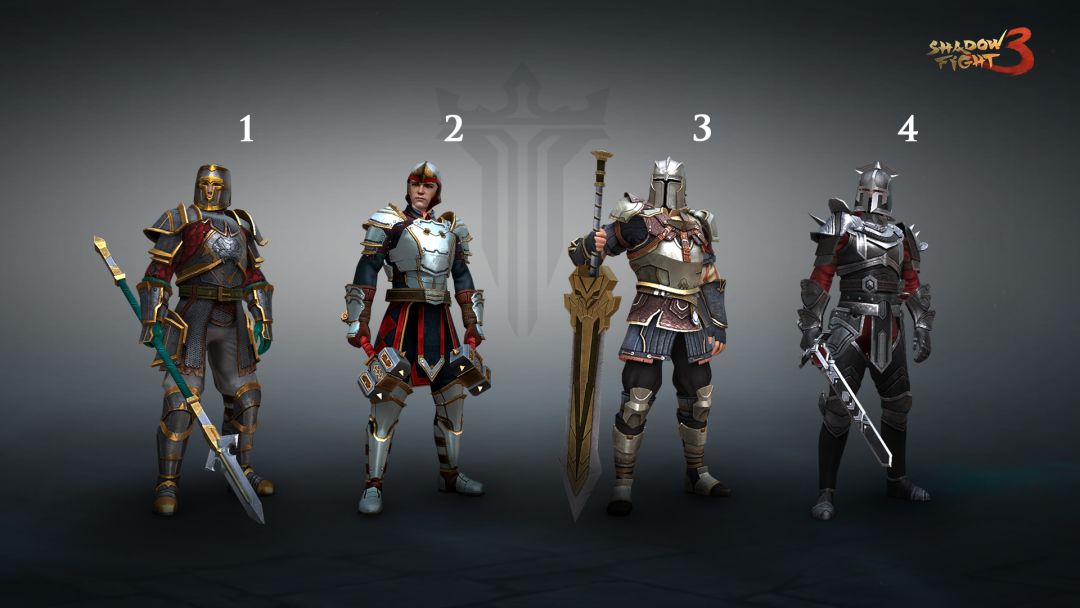 你是否想参与到#暗影格斗3#的进一步发展中? 如果是,那么在下图的选择中,你需要选择一个你喜爱的军团装备, 在暗影格斗社交媒体综合投票数最高的选择,将出现在下一次更新的奖励中。