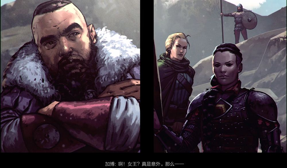 尽管影音表现方面是偏主观的评价要素,但这绝对是玩家体验的加分项。当第一次进入《王权的陨落》后,带有很强系列风格的漫画过场伴着生动的中文配音就呈现在玩家面前:昏暗的酒馆中、神秘的逃犯开始娓娓道来他的故事——这种手绘画风粗犷中却不失细腻。