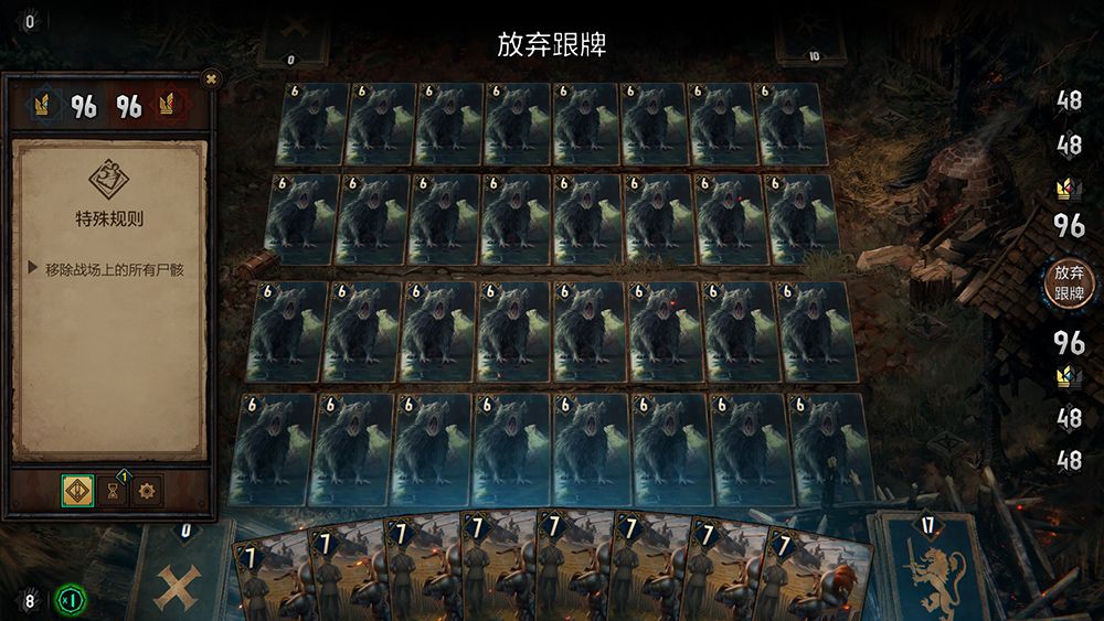 通关了整个单人战役后,玩家不仅能享受到自己解谜的乐趣,更能进一步的熟悉游戏中各种卡牌的效果,掌握一些基础的操作Combo,对于新手而言是相当有帮助的。换言之,《王权的陨落》会是没接触过“昆特牌”或者“巫师”系列玩家最好的入坑之作。不过如果按照这个顺序来想的话,玩家们整个系列完全可以倒着玩。