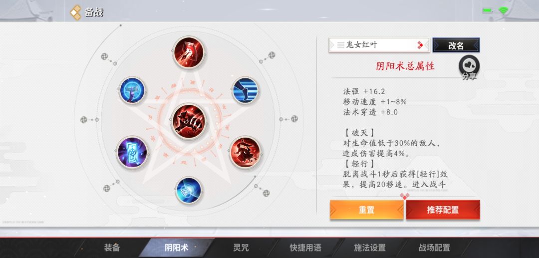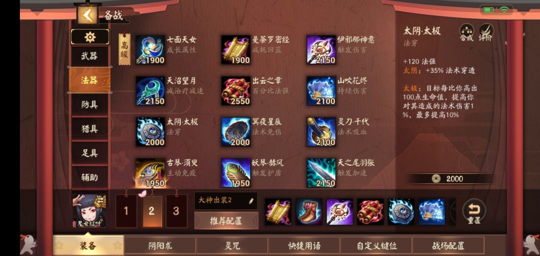感谢b站up主斗鱼仇杏的出装及阴阳术