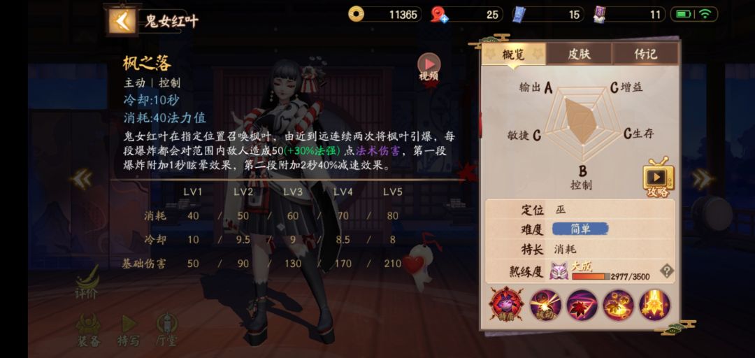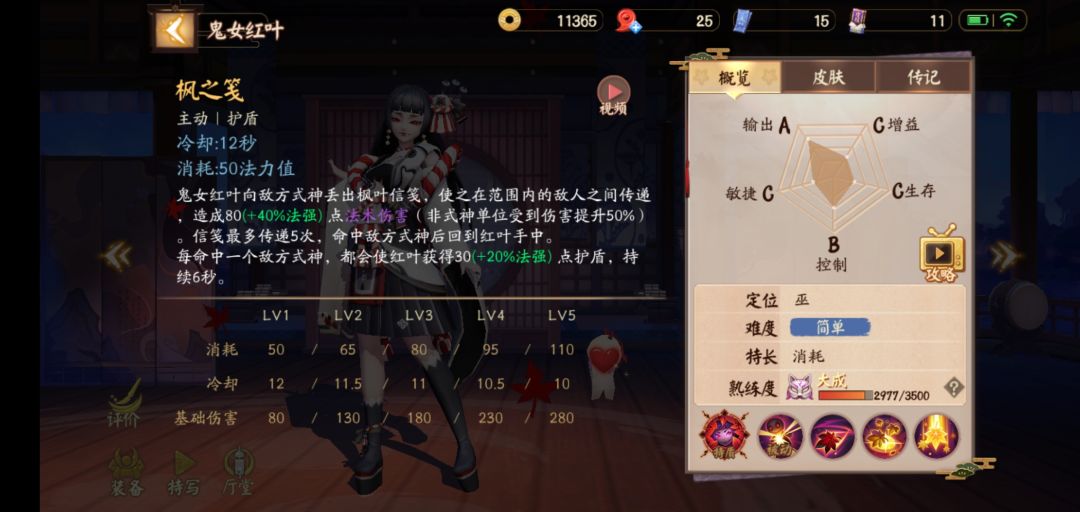简洁就是打出去一个枫叶最多传递5次,命中式神后回到手里会有一个盾,每命中一个敌方式神,盾就厚一点,命中非式神伤害增加50%