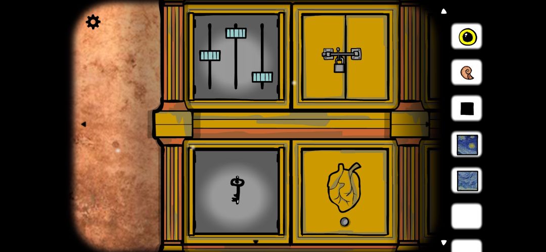 打开柜子,迅速收集柜子里的齿轮,别忘了柜子上方也有一个。