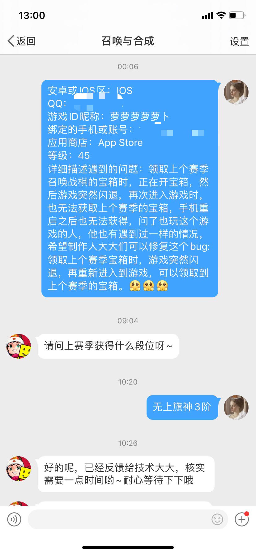 20年春节的时候在家我哥推荐我玩这个游戏,然后开始了我的召唤与合成之旅,进入游戏就可以感受到燃灯大大的用心,邮件里的每一封邮件,都是他亲手用心写的,觉得真的很暖心,当然他也送了很多砖石,真的是游戏里最大方的制作人大大了!!!很多别的热门游戏,在游戏春节里真的是想着怎么赚钱。就算你是新手,第一次登陆玩这个游戏,也会发现你的邮箱里有很多燃灯大大的惊喜。2020年4月6日,召唤与合成游戏里面的召合战旗上个赛季结束了,我正在领取结算上个赛季的宝箱时,然后游戏突然闪退,再次重新进入游戏时,上个赛季的宝箱却领取不了啦,有一些不甘心,不想自己竹篮打水一场空,然后我在微博搜索召唤与合成,然后与召唤与合成的官博聊天,希望他们可以修复下这个bug,我还以为官博不会回复我呢,然后官博回复我啦,也很认真负责用心的解决了我的问题,还和我说: 不客气,有任何问题直接嘀嘀我就可以啦~ღ( ´・ᴗ・` )比心。真的很谢谢这个游戏,谢谢这个游戏背后的所有制作人们,谢谢官博。这个游戏虽然不热门,是一个单机游戏,但是希望这个游戏能被更多的人关注,一起来玩召唤与合成吧!!!!比心♥