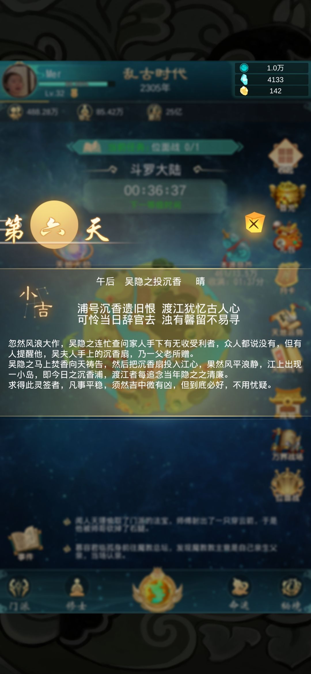 还有就是各个时代。必须进行天地大劫才能进去下个时代,而且天地大劫是每十级进行一次(这个就只能等时间,等级我也没弄明白是怎么升级的),我是有点不太认同的,个人认为想要进行天地大劫应该是你的世界已经发展成到某一程度才能进行天地大劫而不是给了你等级的期限,然后除了加阵法眼能增加突破几率就没有别的办法了。应该可以考虑一下我这个世界修士发展达到了怎样的条件,达到了这个条件就必须进行天地大劫才能继续世界的发展,不然只能停滞不前,而不是用时间概念来进行天地大劫。(比如修士高等级的数量,如果太多则必须进行消灭,)