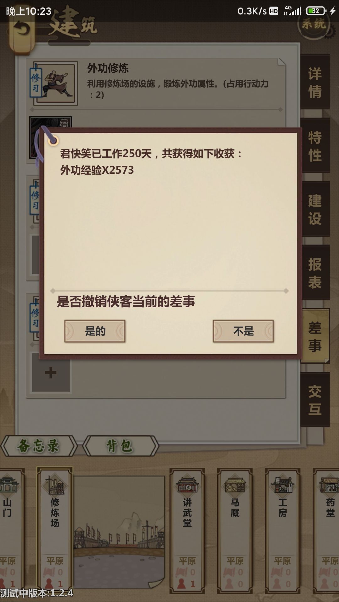 本人有几个遗憾的点 我因为太专注于武力 忘记接受乌衣帮和南城帮任务 打一次架100+经验 这两任务没做 亏了起码2000经验 加上每天要去村里用主角打水加外力 最后的最后 我觉得现在的极限武力应该能有26武 注(我们是研究武力的为了日后的完整版能活的更久 想刷传承点的此攻略不适合 因为银子都看电影了撒)