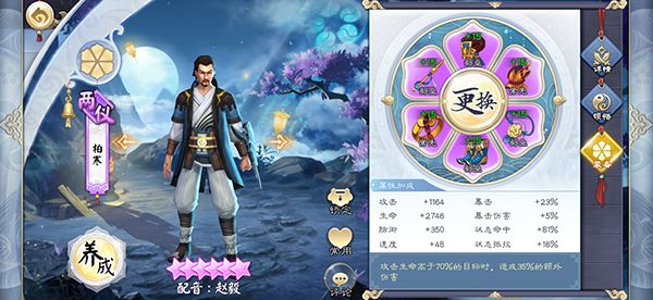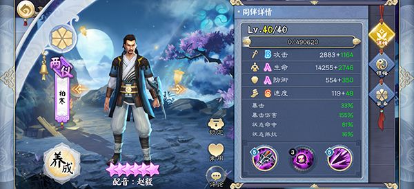结合柏寒的面板属性和大招技能,可以很明显的看出,我们对柏寒的培养重心,就是行动速度、状态命中,主要这两条属性。