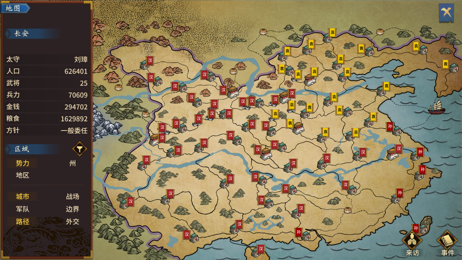 废史立牧,可得游戏结束南方容易打下可以作为粮仓,东面守住江州后刘表打不进来,北面张鲁兵力弱,马腾的骑兵攻不下汉中,等有了连弩兵直接北上拿骑兵连弩兵属实变态,拿它直接把大半江山打下来了