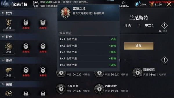 前期领主如果以发展为主,建议优先选择兰尼斯特家族任务,艾琳家族次之。兰尼斯特家族祝福前期可以提供金币产量和科研加速效果,对于发展型的领主来说最为合适。
