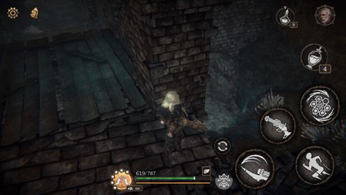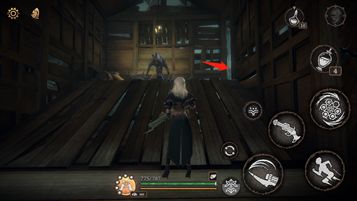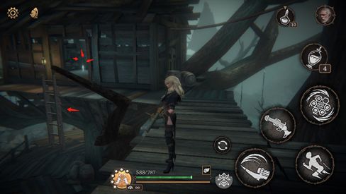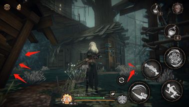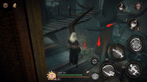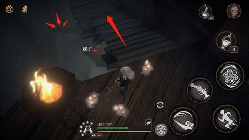 出木门后经过吊桥,顺梯子下去,前往小屋,可踢开梯子的捷径。