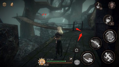 经过圆盘平台上梯子,击杀斧头怪后,前往吊桥尽头的小屋探索,