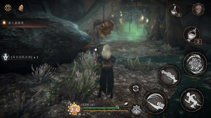 二、推图过瀑布,进入山洞,3个黑色向日葵旁的宝箱拾取任务道具【过去之石】。