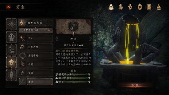 祭坛的战利品炼金可获得【永恒】(精力恢复速度+45)