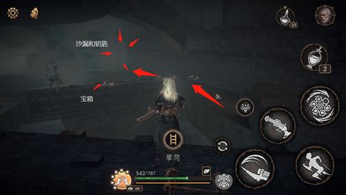 右侧与洗点NPC掘墓人对话,获取战利品【梅洛斯瓶】。NPC后面还有梯子捷径。