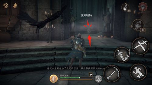 二、在艾克哈特旁边,乘坐升降梯往上,到圣剑雕像处可以获得【崔斯坦的慈悲】,并出现4个弓箭手,此时到手的是假圣剑。按雕像正对的方向看去,过桥后即是第一个四神柱,附近有1个骑士和2个弓箭手。开门后,即可获得圣剑碎片【灰暗的剑格】和【狂人日记】。(第一个圣剑碎片到手)