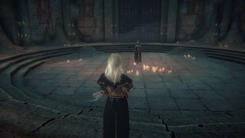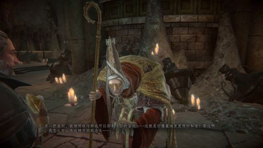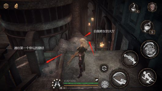 三、继续从神柱门口的方向前进,在图二左侧可开启捷径,直走到底右拐则会碰到想要用圣剑自裁的修女。触发[轶闻]支线任务【死亡,或者成为污秽】。