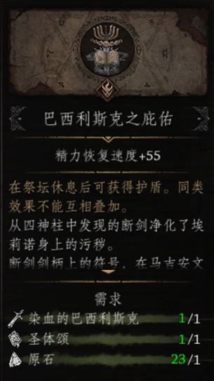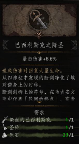 随后,玩家在击杀第六章的BOSS希金斯以后,可以获得教宗的3个圣物,剧情后在祭坛选择【战利品炼金】,即可看到完整版的圣物三件套。