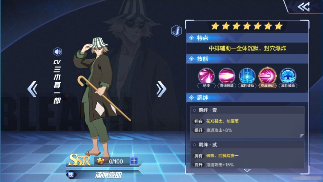 本期【角色讲座】给大家介绍的角色是“浦原喜助”,这位神神秘秘的杂货店店长,在游戏里少了些输出能力,更擅长的是团队协作和控制的方向。