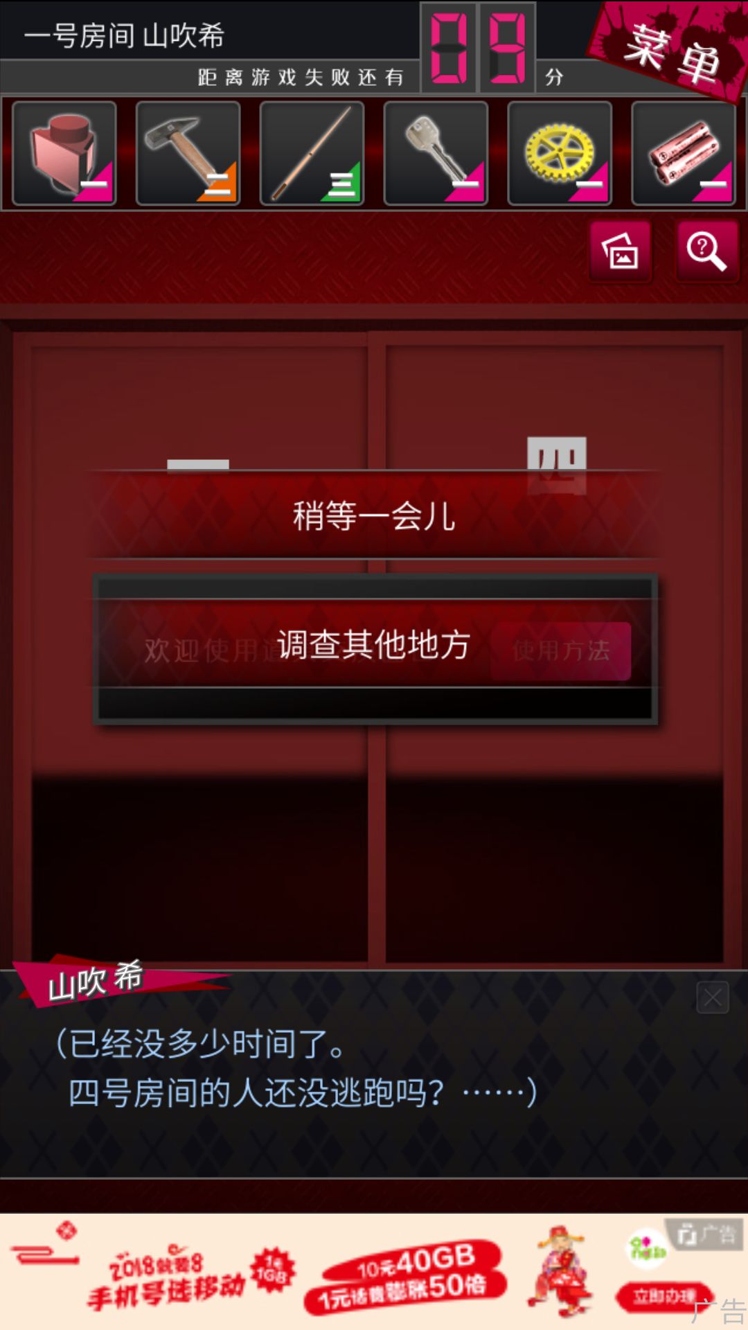 然后把每个房间的道具还回去,并且选择“稍等一会儿”,所有人都逃脱后用钥匙离开。