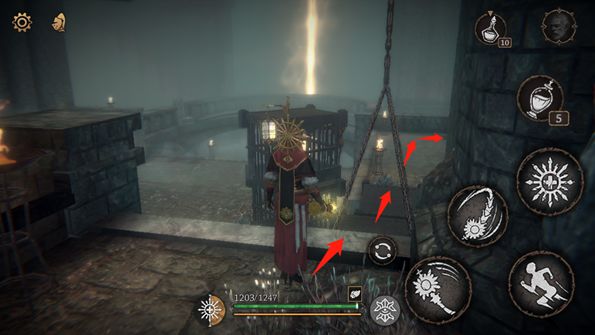 六、继续推进主线剧情,帮疯子降下牢笼后,触发主线【帮疯子打开囚牢】。