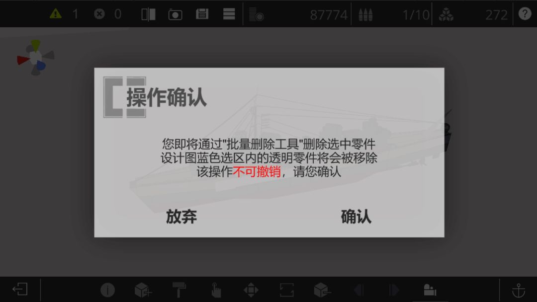 在新版本中新增批量上色功能,现在可以对所框选区域内的所有零件进行批量上色了。同时新增批量删除功能,现在也可以对所框选区域内的所有零件进行批量删除了。除此以外,我们为设计界面右上方的元素增加了可以点按的提示信息。新版本中自定义零件在选取的过程中将会隐藏钢筋和涂装板。同时,经过修复,设计界面展示的水线将能够正常表示船只的纵向倾斜角度了。