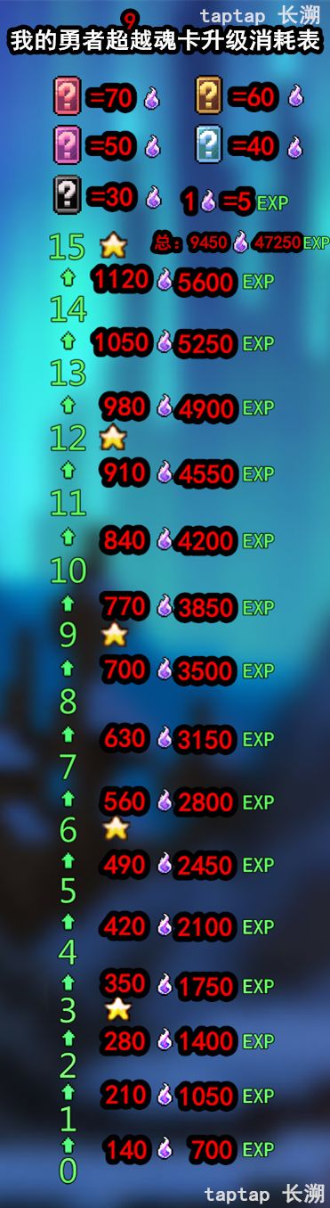 魂卡升级消耗表: