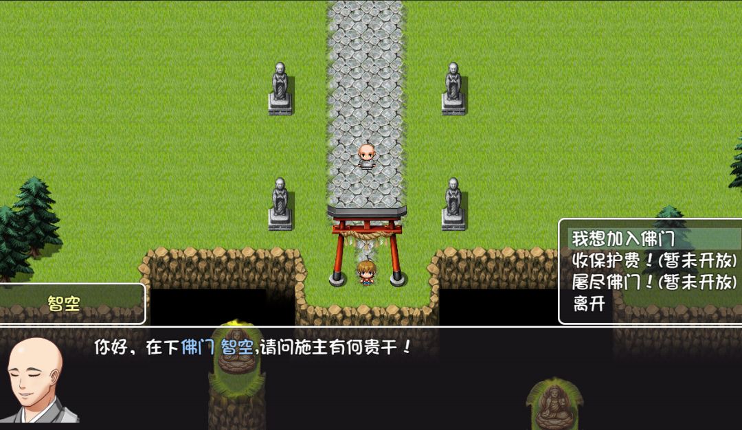 游戏中加入了"门派",你可以选择独自冒险,或是"加入门派",每个"门派"有属于自己的传承及独特的剧情,你只能选择一个门派,门派有"佛门","龙虎山","原谅门","蜀山",甚至是西方教派"圣光教"等等(很多,还需慢慢做)