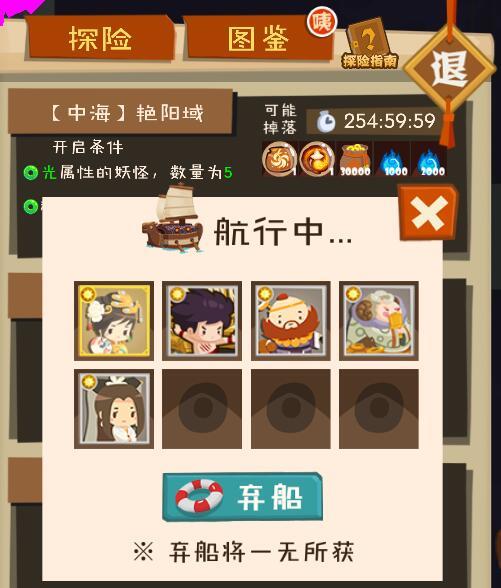 根据探险指南,需要献祭素材来增加开船探险的时间,时间必须大于1小时。当你有妖怪闲置在仓库的时候,就可以考虑来开船得到想要的金币、魂、素材。当然,开船都需要条件,只有当触发到了这个条件,才可以发动这艘船能得到的特定的东西。(简单来说就是:用不需要的素材和饭来换需要的素材或者金币。)