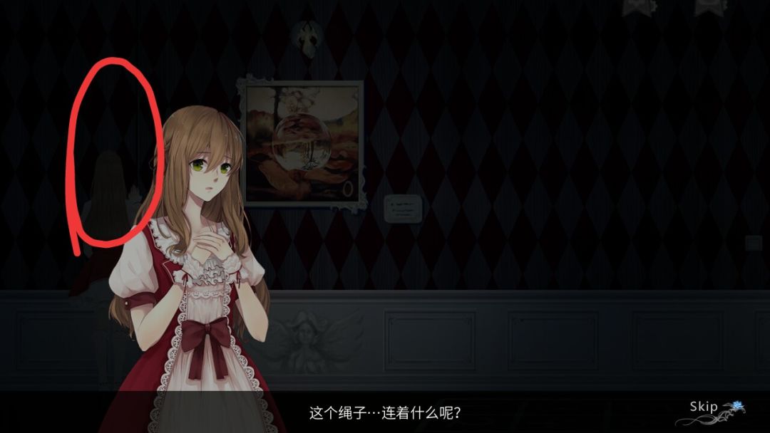 第四个走廊刚进去女主会说有什么在意的东西,用刀点击这里女主会说脚步声停了【我并没有获得线但是看另一个通关教程说会得到线】