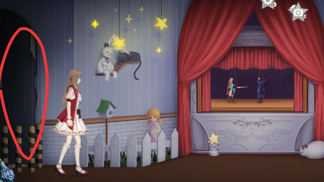 到和式玩偶馆先点击兔子再点少年把兔子给他再次点击少年对话获得怀表,把地上的公主捡起来