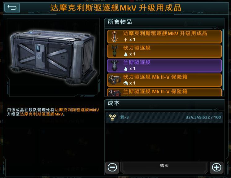 各位指挥官可进入贸易站,消耗100单位氦-3,即可领取恶魔系列-达摩克利斯驱逐舰MK5成品升级积分X1、砍刀驱逐舰成品X1、兰斯驱逐舰成品X1、砍刀驱逐舰MK2-5保险箱X1、兰斯驱逐舰MK2-5保险箱X1。