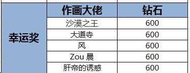 幸运参与奖:600钻(随机抽取5位参与绘画的勇士)