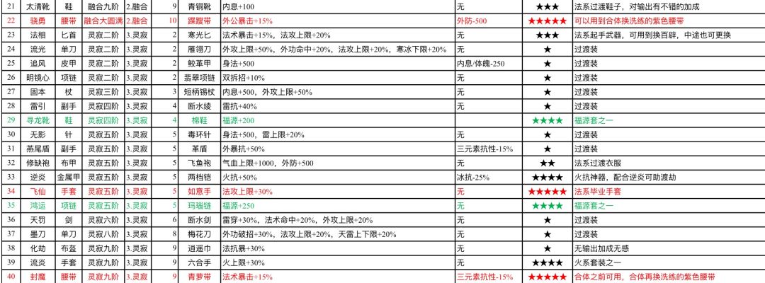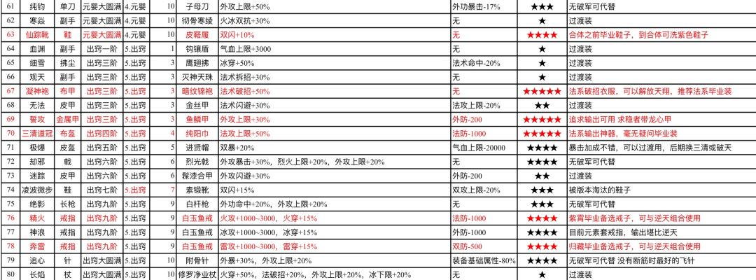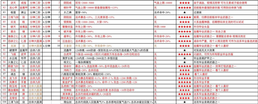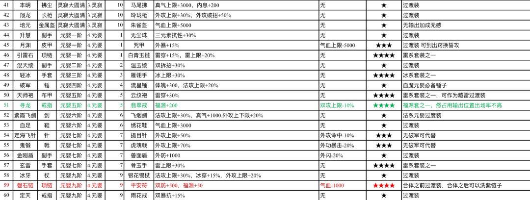 特殊装备一览表(摘自Q群文件)