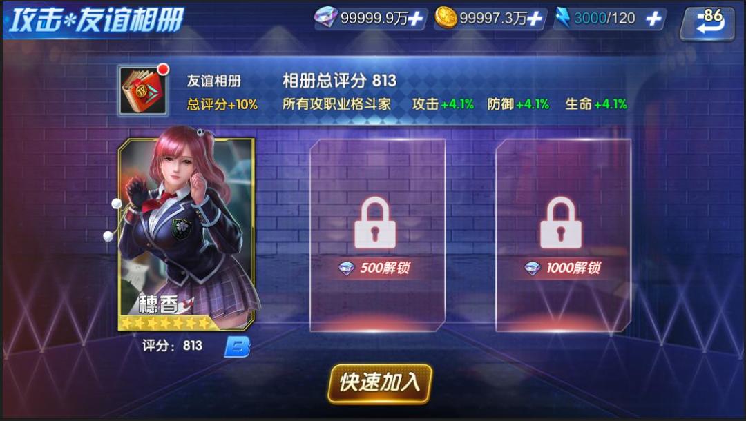 在此次新版本中,全新玩法-友谊相册将与格斗家们玩见面。在游戏中,一共有6个系列友谊相册,分别为攻系格斗家相册、防系格斗家相册、辅系格斗家相册、控系格斗家相册、女性格斗家相册、男性格斗家相册。相册的解锁随战队等级提升,而逐步解锁。