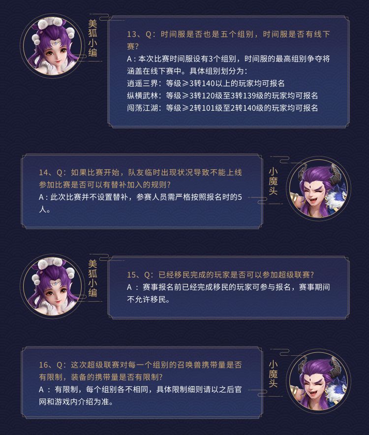 龙腾虎跃聚群雄,五湖四海会英豪。《大话西游》手游龙争虎斗超级联赛即将火热开启,作为大话玩家热爱的竞技赛事之一,今年的超级联赛将全面升级,为大家带来贯穿全年的精彩赛事体验!为了帮助大家能够顺利在本次龙争虎斗超级联赛取得好成绩,在正式鸣锣开赛之前,大话为大家带来了详细的超级联赛Q&A,先来了解一下关于超级联赛的各种信息吧!