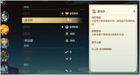 通宝是非常直接能反映玩家经济实力的一项货币,也是平民玩家和土豪玩家差距最大货币种类