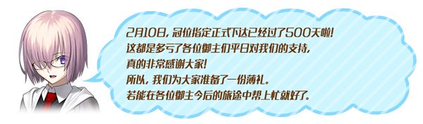 请各位御主,务必记得我们将在2月10日于迦勒底相聚的约定!