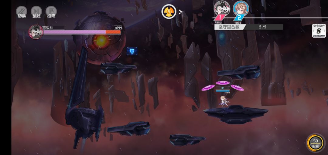 然后boss会放一个被风影响的技能,也就是为什么强调的开局要有风,这个技能会被盾挡掉,4回合过去了,接下来应该猜得到了,没错,靠罗兰被动复活,成功复活就能3星过关了