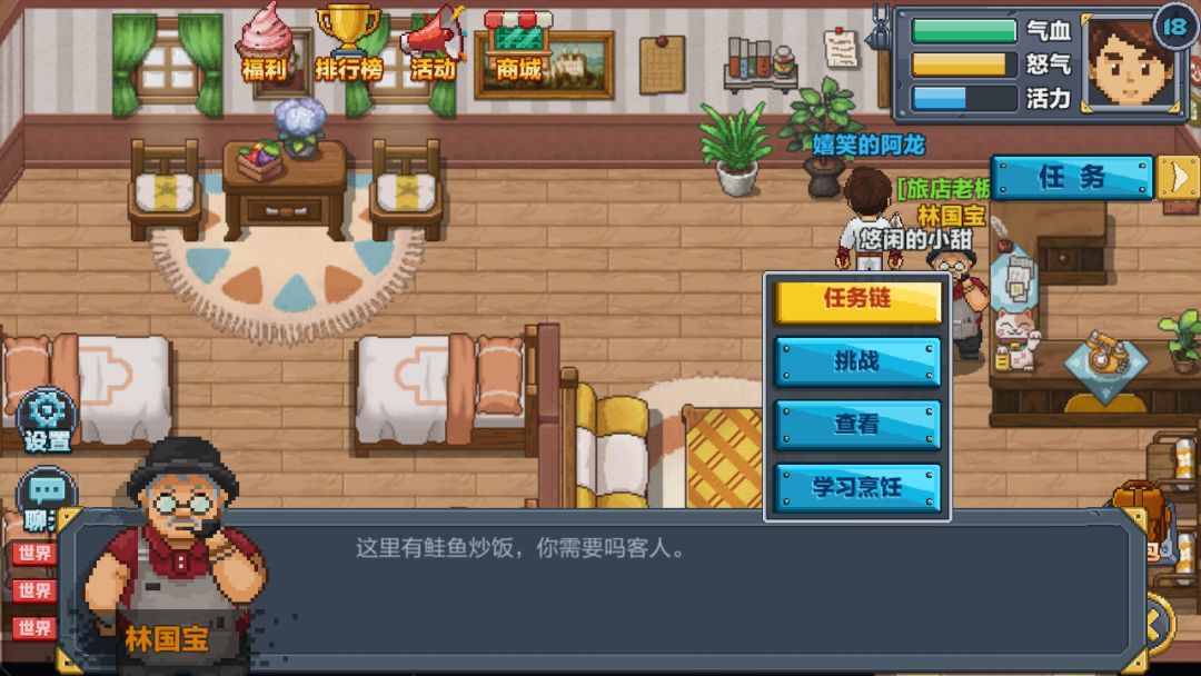 在游戏里,很多玩家都问小篇,15级之后没了主线任务,怎么升级?是的,15级之后没了主线任务,便很难升级,但不是不能升,玩家可以每天做任务链来获取经验,任务链在旅店的林国宝那可以领取(小篇告诉你们,其实现在任务都是重复的,所以其中有两个任务是需要蔬菜的,土豆和萝卜,注意保留哦).