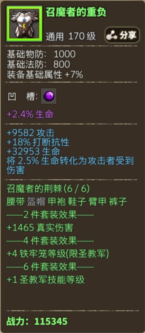 咳咳,我们来看看召魔套的具体数值