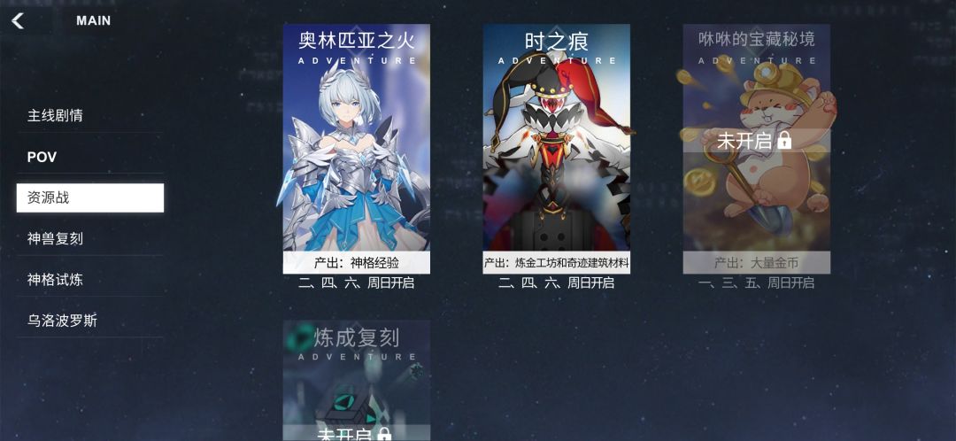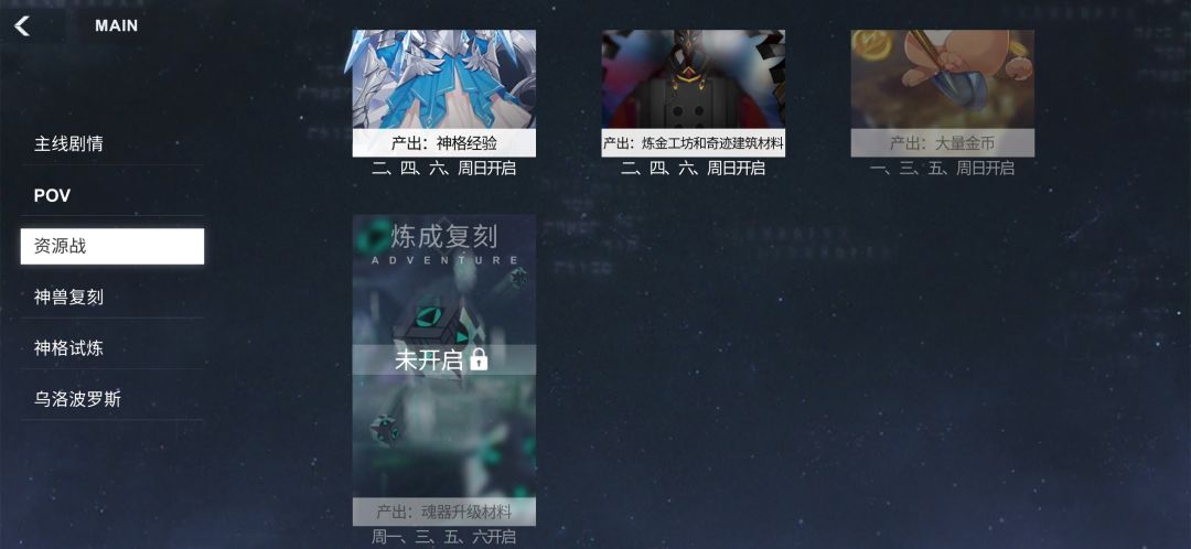 3.资源本时之痕和炼成复刻会成为你的第二个家。