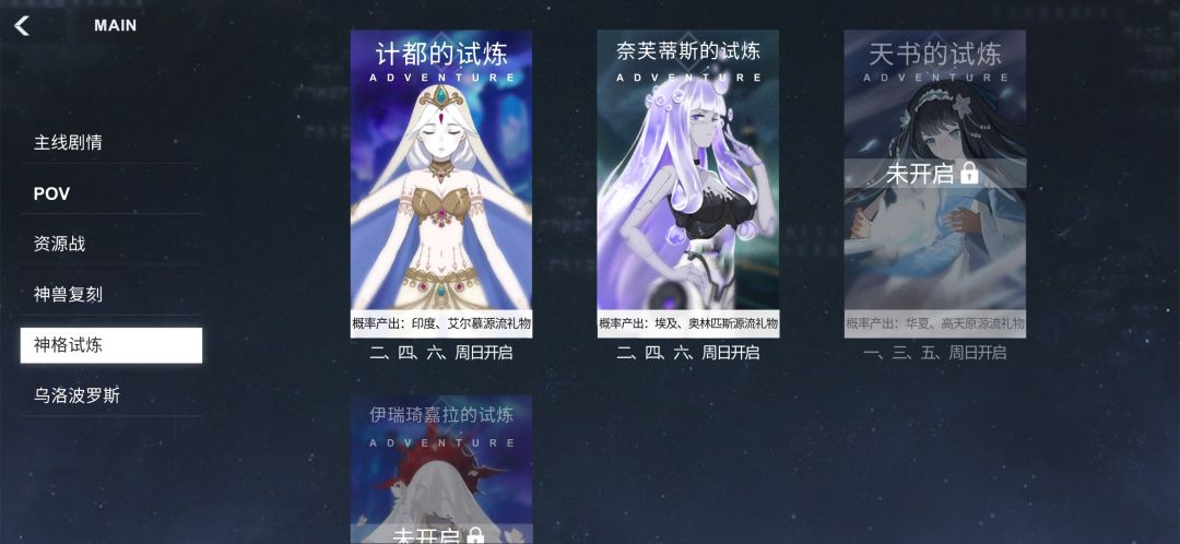 3.心愿,每天系统抽8个自己选3个神格,可能会有重复的神格,涉及到每日每周任务。