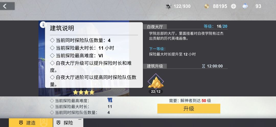 该建筑等级上限为白夜大厅目前等级的两倍。